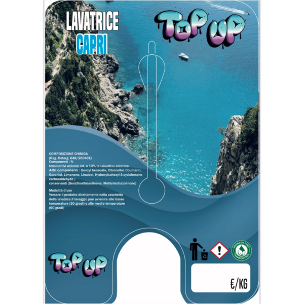 Facile da usare, è adatto per lavaggi a basse temperature (30°C) e medie temperature (60°C), permettendo di ottenere un bucato fresco e pulito con un consumo energetico ridotto. Venduto alla spina, il Detersivo Lavatrice Capri è anche una scelta ecosostenibile, contribuendo a ridurre l’uso di plastica monouso.