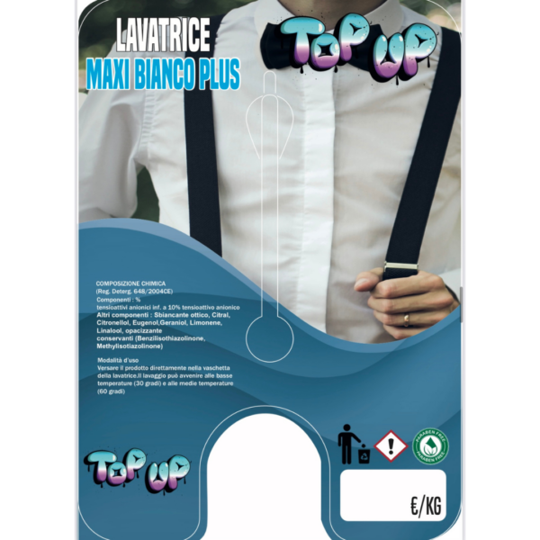 Proprietà: La formula ricca di Maxi Bianco Plus assicura una pulizia profonda mantenendo inalterate le caratteristiche dei tessuti. Le alte percentuali di sbiancante ottico esaltano il bianco, rendendo i tuoi capi brillanti e freschi.